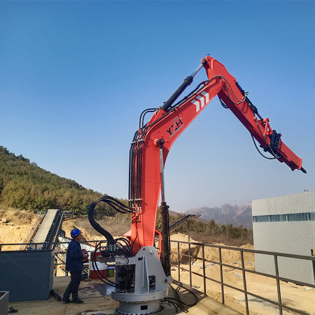 A large aggregate plant installed this robotic arm at the jaw crusher feed inlet to resolve material jams, reducing downtime and boosting overall output.